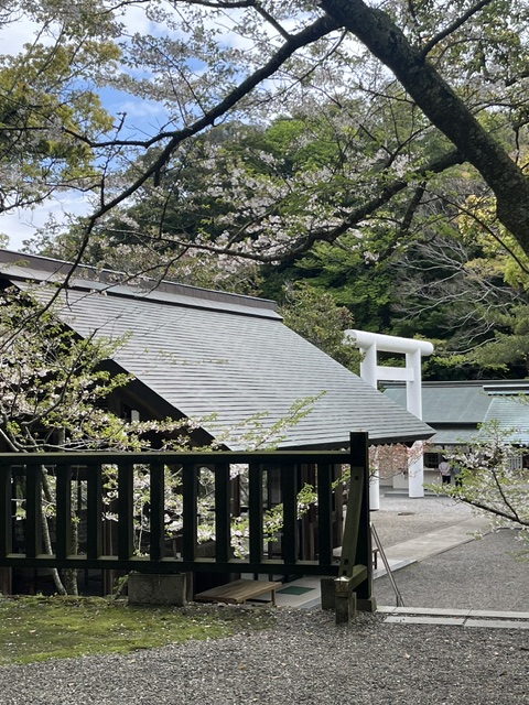 鳥居の前で一礼して結界の中に入ると、スッと背筋が伸びるような、凛とした空気に包まれます。 春には参道両脇のソメイヨシノが満開になり、桜のトンネルになるそうです。私が訪れた際も、木々のざわめきと玉砂利を踏む音だけが響き、世俗から切り離されたような静寂がありました。