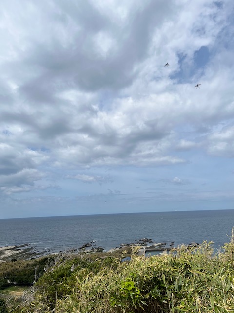 本殿を背中側にして太平洋?東京湾?を見た風景です。 絶景です。