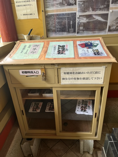 御朱印は、土日以外。管理者がいないために、500円投入して御朱印を貰う形です。