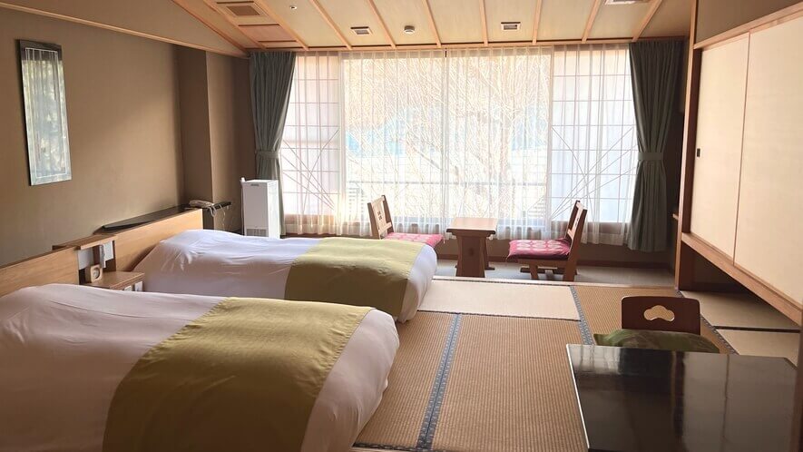 桂川の客室は、和室を中心に、モダンな和洋室やツインルームなど、多様なニーズに応える設計となっています。