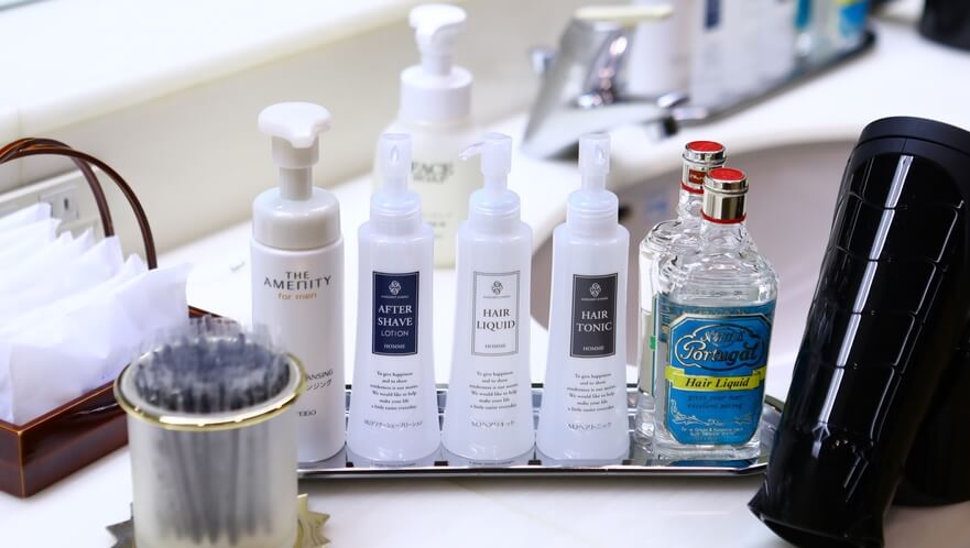 本館・別館ともに、女性向けのスキンケアセット(クレンジング、洗顔、化粧水、乳液)や、高品質なシャンプー類が完備されています。別館になると、さらにブランドがグレードアップし(例:ブルガリやミキモトの高級ライン)、バスローブの質感やタオルの厚みまで、細部にわたり最高級品が用意されます。