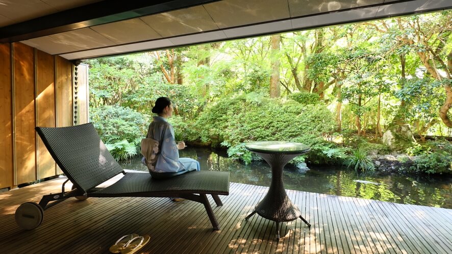 | 別館 | 迎賓館(露天風呂付和洋室) | 約100平米 | 2〜4名 | あり(大) | 特別な記念日、完全なおこもりステイ |