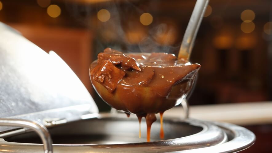あさやホテルのビュッフェ会場に足を踏み入れると、数ある豪華料理を差し置いて、ひときわ長い行列ができているコーナーがあります。それこそが、多くの宿泊者が「これを目当てに来た」と語る**『あさや特製和牛カレー』**です。