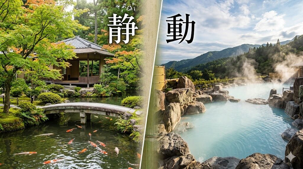 両館の最も大きな違いは、**「滞在中の過ごし方のコンセプト(静と動)」**にあります。