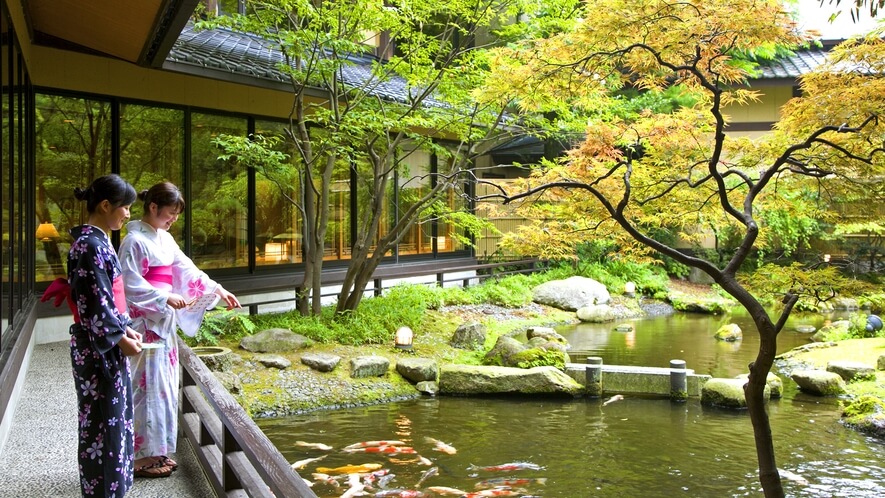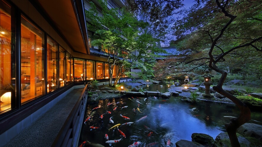 館内に足を踏み入れると、まず目に飛び込んでくるのが手入れの行き届いた中庭です。四季折々の花や緑、そして優雅に泳ぐ鯉の姿は、長旅の疲れを瞬時に和らげてくれます。定期的なリニューアルも行われており、老舗の重厚感を残しつつも、ラウンジや客室の一部は現代の旅行者のニーズに合わせた和モダンスタイルへとアップデートされています。