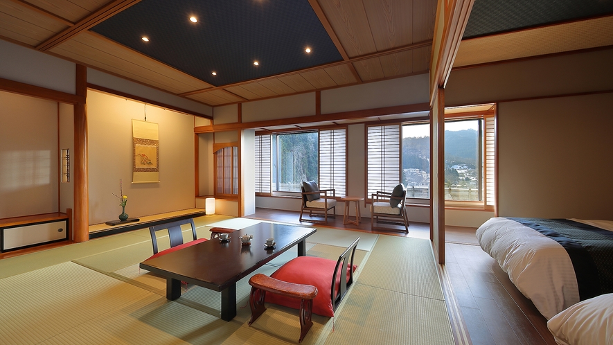 美しい日本庭園を囲むように配置された、宿を代表する上質な客室です。露天風呂付きの客室もあり、誰にも邪魔されない至福の時間を過ごせます。