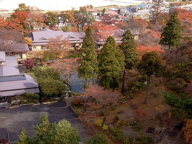 広大な敷地内には四季折々の表情を見せる日本庭園が整備されており、その庭園を囲むように、純和風の「本館」と、後年増設された洋室中心の「別館(庭園ホテル)」が配置されています。