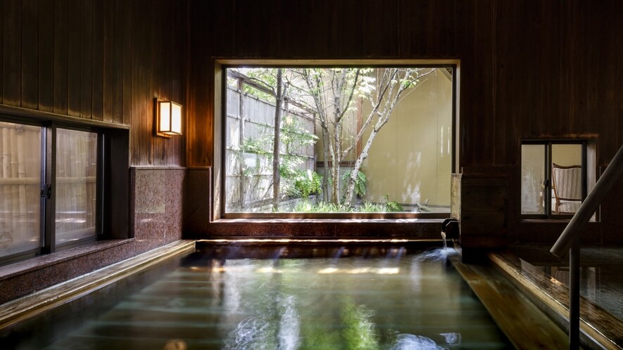 - 大浴場「悠々自適」:広々とした内湯。窓からは手入れされた庭園を望めます。