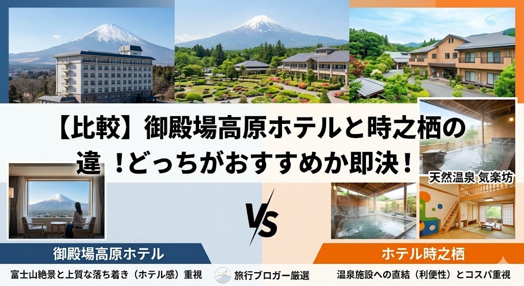 静岡県御殿場市にある日本有数の巨大レジャー施設「御殿場高原 時之栖(ときのすみか)」。約10万坪もの広大な敷地内には複数の宿泊施設が存在しますが、予約時に最も多くの人が悩むのが**「御殿場高原ホテル」と「ホテル時之栖」のどちらを選ぶべきか**と... -