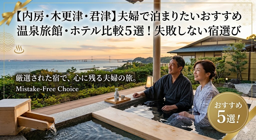 夫婦の内房旅行、宿選びで失敗しないための「3つの基準」 「夫婦水入らずで、日々の疲れを癒やす温泉旅行へ行きたい。でも、移動で疲れるのは避けたい」 そんなご夫婦に圧倒的な人気を誇るのが、千葉県の**内房エリア(木更津・君津・富津・鋸南)**です。... -