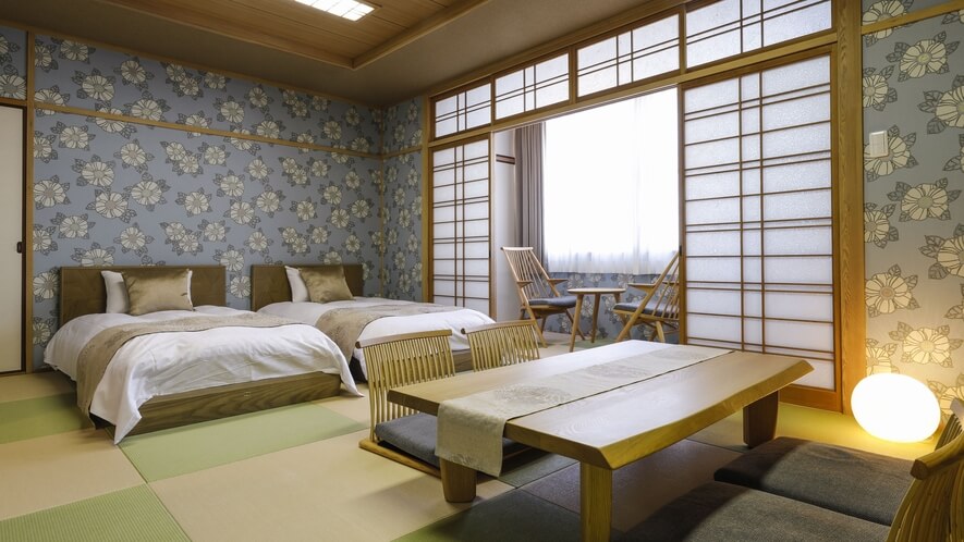 1. 純和室(10畳〜12畳):ファミリー・グループ向け最もスタンダードな客室です。広縁(窓際のスペース)があり、荷物を広げても十分な余裕があります。ハイハイをする小さなお子様がいるファミリーや、布団を並べて修学旅行気分を味わいたい学生・友人グループに最適です。