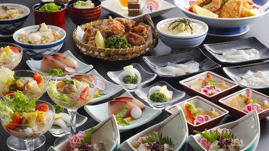 旅行の大きな楽しみである「食」。ホテル葛城では、瀬戸内海の豊かな海の幸と、愛媛の温暖な気候が育んだ山の幸をふんだんに使用した料理が提供されます。