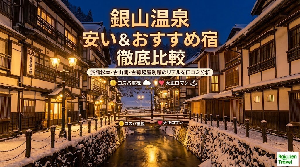 いかがでしたでしょうか。全国的な人気を誇る銀山温泉において、「高い、予約が取れない」というイメージを覆す、コスパに優れたおすすめ宿「旅館松本」「古山閣」「古勢起屋別館」の魅力とリアルな注意点を余すところなく解説しました。