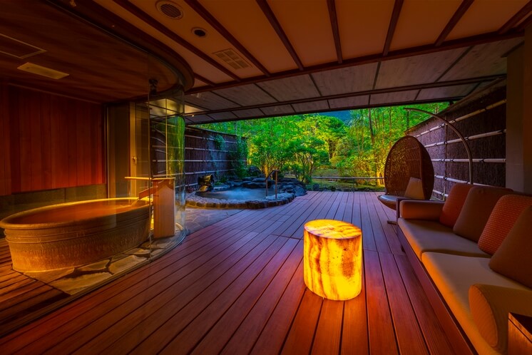 さらに贅沢を極めるなら、専用の源泉掛け流し露天風呂が付いた個室をリクエストしてください。施術の前後で、誰にも邪魔されずに絶景露天に浸かり、火照った体を山の風で冷ます……。このサイクルこそが、吟遊スパでしか味わえない至福のデトックス体験です。