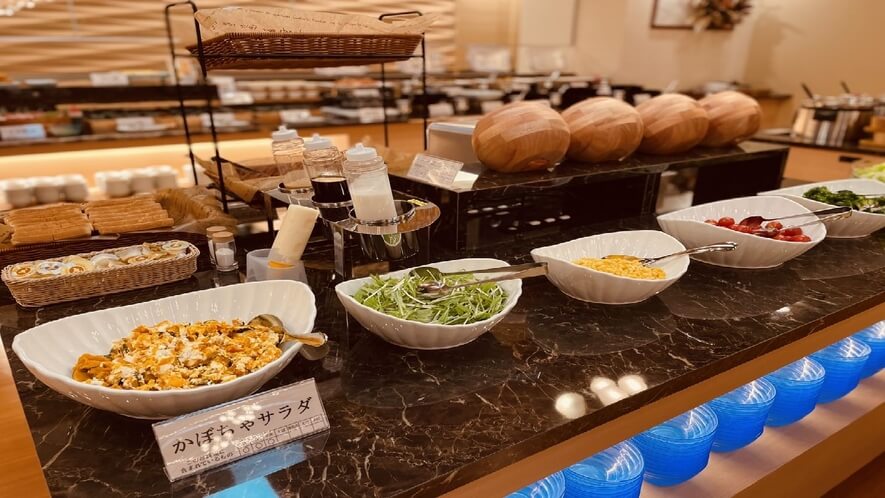 朝食:活気に満ちた和洋バイキング(または和食膳)