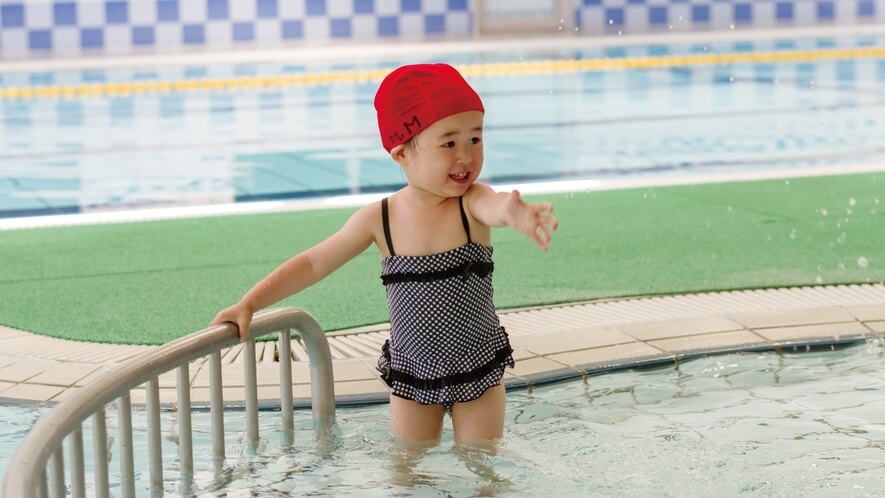 👶 子ども用プール:屋内温水プールあり。浅瀬スペースもあって安心