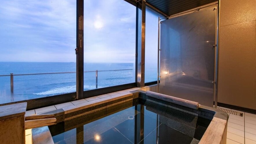 - ロケーション: 特筆すべきは、海までの距離です。露天風呂の柵のすぐ向こう側には白波が砕け散る岩礁が広がり、潮の香りと波の音がダイレクトに五感を刺激します。目線が海面とほぼ同じ高さになるよう設計されており、本物のインフィニティ風呂を体感できます。