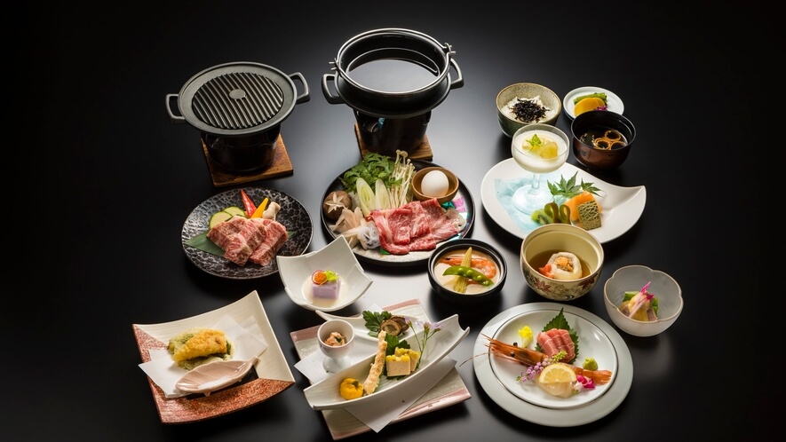 - 目玉料理: 多くのプランで提供される「甲州牛の溶岩焼き」または「すき焼き」は絶品です。溶岩プレートで焼くことで、肉の旨みを閉じ込め、余分な脂を落としたヘルシーかつ濃厚な味わいが楽しめます。