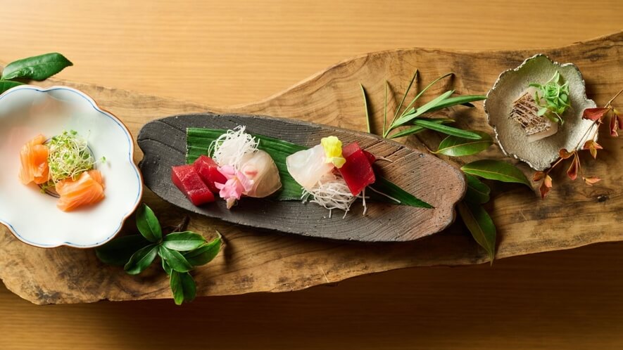相模湾や駿河湾で水揚げされた魚介類、足柄牛や箱根西麓三島野菜など、近隣の豊かな食材を多用。先付から始まり、美しい八寸、お造り、メインの肉料理(足柄牛のローストやサーロインの炭火焼きなど)まで、目でも舌でも楽しめる構成です。また、箱根では鉄板焼グリル「十邑」を選ぶこともでき、目の前でシェフが黒毛和牛や伊勢海老を焼き上げるライブ感は、連泊時や記念日に圧倒的な人気を誇ります。