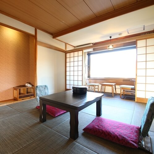 最も一般的なのが10畳から12畳ほどの和室です。畳の香りが心地よく、広縁(窓際の椅子セットがあるスペース)からは中庭や周辺の山々を望むことができます。布団を敷いて寝るスタイルは、小さなお子様連れのファミリーや、足を伸ばしてくつろぎたいグループ旅行に最適です。