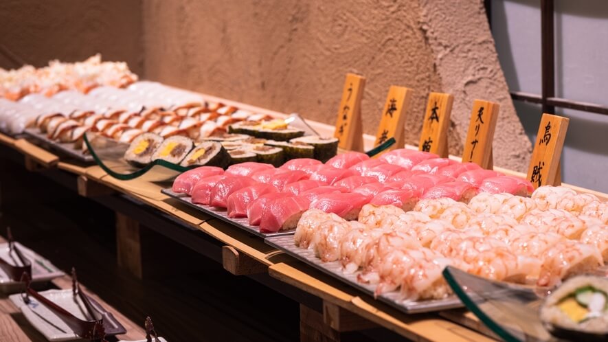 ■ 食材とメニューのこだわり 一般的なビジネスホテルのバイキングとは一線を画し、熊本の地元食材をふんだんに使用した質の高い料理が並びます。特に評価が高いのが、職人が目の前で握る「寿司コーナー」です。新鮮な魚介をその場で提供するため、常に活気があります。他にも、熊本名物の「あか牛」を使った料理や、郷土料理である辛子蓮根、新鮮な阿蘇の野菜を用いたサラダバーなど、目移りするほどの品数が揃っています。