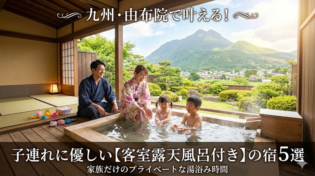 もし日帰りで子連れで貸切風呂を利用したい場合は、今回紹介した宿泊特化の宿ではなく、日帰り入浴をメインとしている施設(例:「ゆふいん束ノ間」や「山のホテル 夢想園」など※露天風呂の広さや貸切の有無は要確認)を検討する方が、確実かつスムーズです。しかし、子連れでの移動や休憩場所の確保を考慮すると、やはり「客室露天風呂付きの宿に宿泊する」のが、最も疲労度を抑えられる選択と言えます。