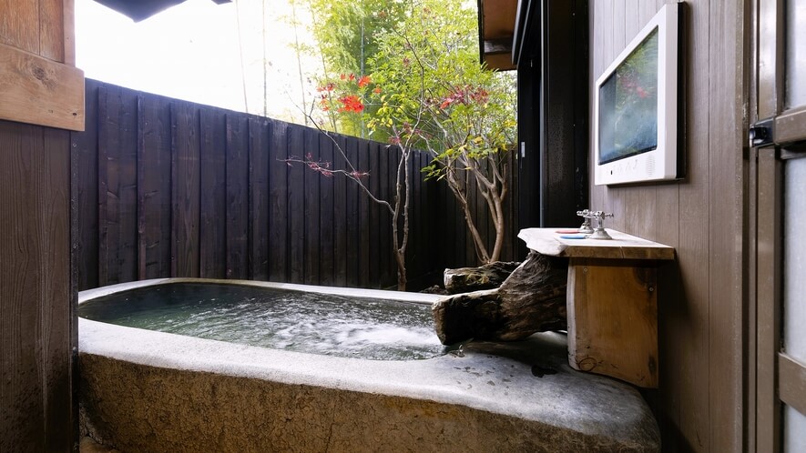 | 泰葉 | 離れ・露天風呂付き和室 | 8〜10畳 | 畳敷き | 陶器風呂または岩風呂。青湯を独占。 |
