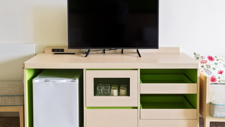 - 42型スマートテレビ(2024年リニューアル):全室のテレビがキャスティング機能対応のスマートテレビに一新されました。スマホと繋いで、その日パークで撮った写真や動画を大画面で振り返ったり、YouTubeで翌日のパレードの予習をしたりと、部屋での過ごし方がより豊かになっています。