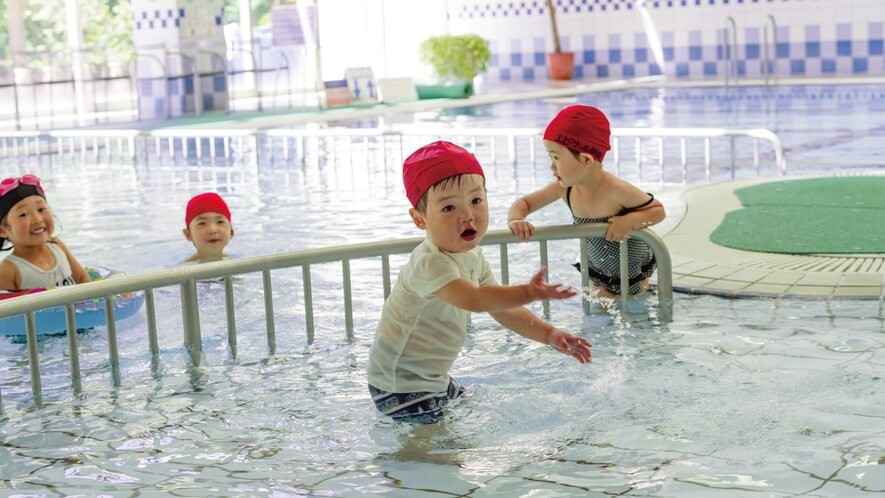 「まだ外のレジャー施設へ行くのは早いかな?」という年齢のお子様でも、エピナールの室内プールなら安心です。