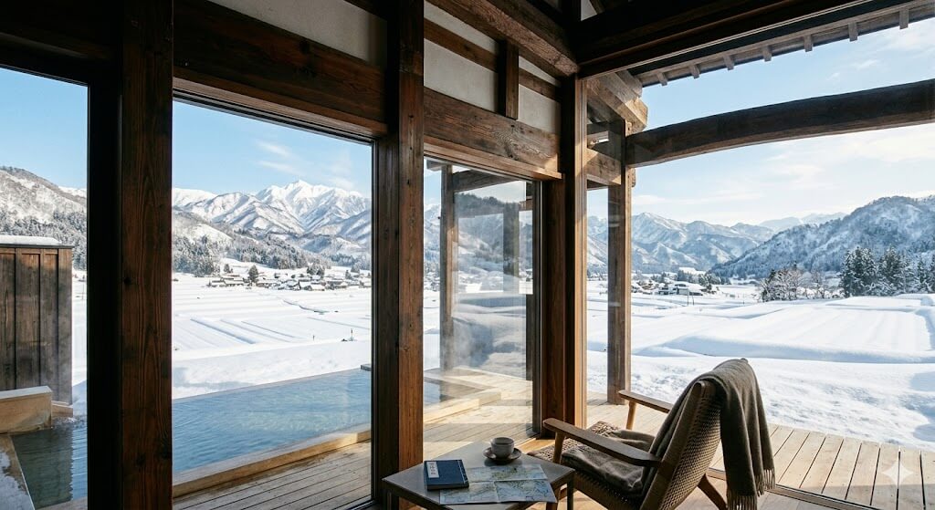 さらに、「どうしても野沢温泉が取れなかった場合」の最強の妥協案もご用意しました。ローカル線に揺られて向かう風情ある温泉街から、「サウナ完備のデザインホテル」「源泉掛け流しの露天風呂」「リノベーションされた趣ある古民家宿」まで、「むしろこっちに泊まってよかった!」と思えるような極上の周辺宿を厳選してご紹介します。