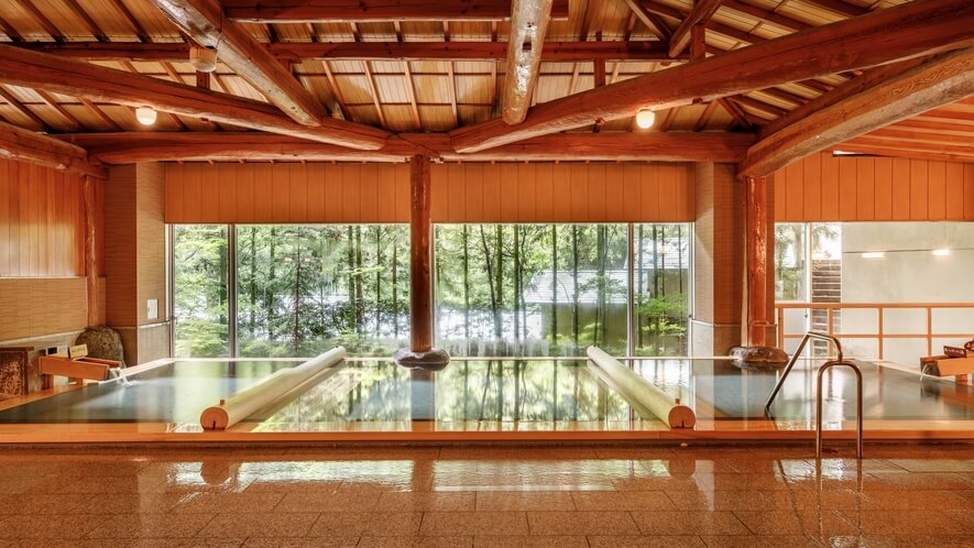 - 内湯の広さ: 一度に20名以上が入っても余裕のある巨大な湯船。全面ガラス張りで、内湯からも作並の山々を望めます。