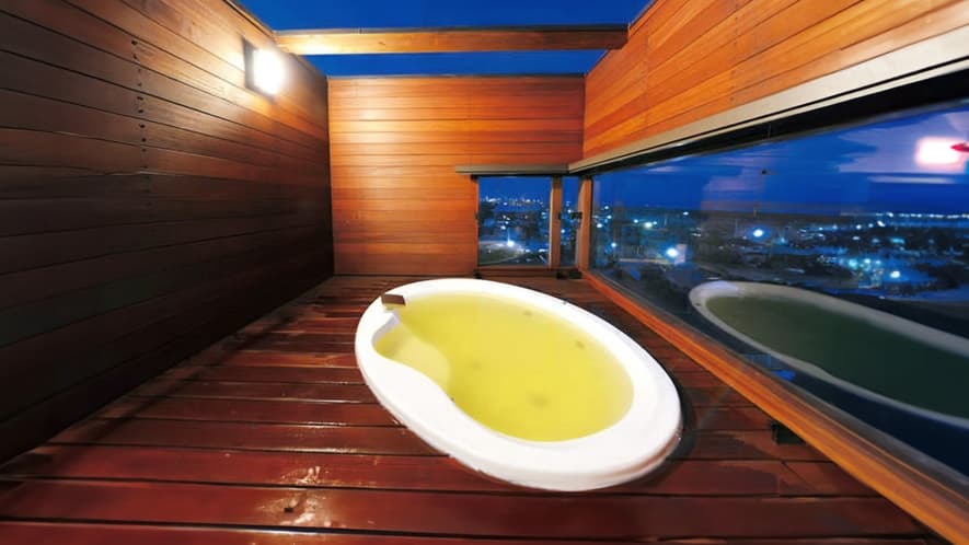 - 屋上露天風呂の開放感白子温泉の中でも、屋上に露天風呂を構えている宿は限られます。九十九里の潮風を感じながら浸かる黄金の湯は、他の宿にはない開放感を提供してくれます。