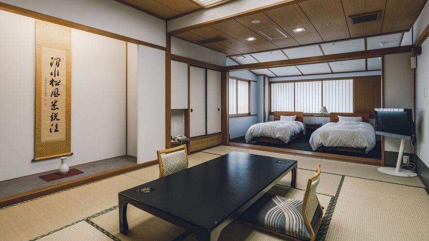 - 特徴:畳の寛ぎとベッドの快適さを両立させた人気の客室タイプ。足腰に不安がある方でも、立ち上がりが楽なベッドスタイルが支持されています。