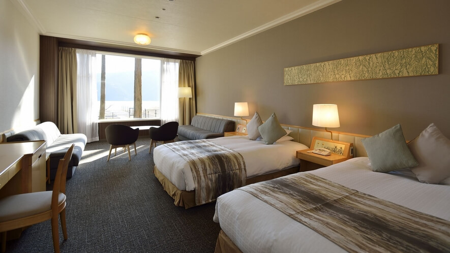 - 設備スペック: スーペリアツインルームで広さ38㎡。ベッドサイズ等は本館とほぼ同等。一部の部屋からは芦ノ湖越しに富士山を望むことができます(天候による)。