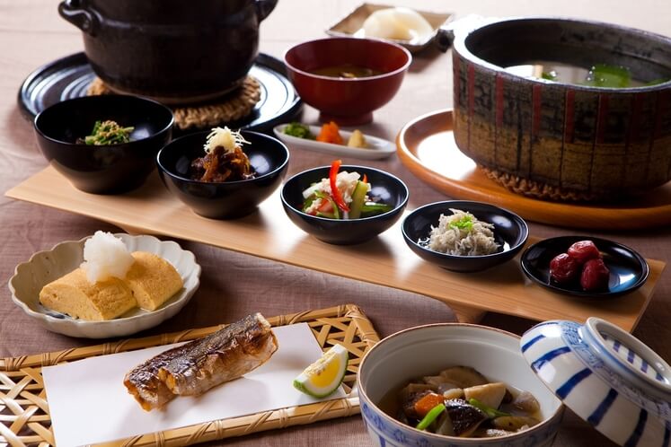 食事は、レストラン「螢火園」や部屋食にて、大分の山海の幸を贅沢に使った伝統的な山里料理が提供されます。特にスッポン鍋は古くからの名物として知られています。